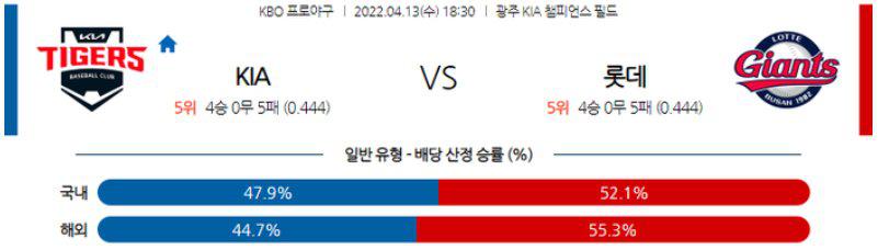 전일 경기에서는 기아가 6-5 승리를 기록하며 시리즈 기선제압에 성공했다. 3연패에서 벗어나는 승리가 나왔으며 시즌 4승5패 성적. 경기 초반 3-5로 끌려가던 경기를 8안타(1홈런)를 기록한 타선의 집중력을 앞세워서 역전한 경기. 반면, 롯데는 2연패 흐름 속에 시즌 4승5패 성적. 선발 반즈 투수가 수비 도움을 받지 못하며 5이닝 4실점(비자책)을 기록했고 2경기 연속 필승조 불펜의 진검 승부에서 밀렸던 상황.