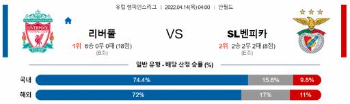 UEFA 챔피언스리그 4월 14일 04:00 리버풀 : SL 벤피카