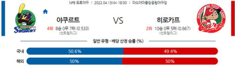【NPB】 4월 13일 야쿠르트 vs 히로시마