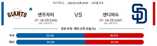4월 14일 04:45 MLB 샌프란시스코 : 샌디에이고