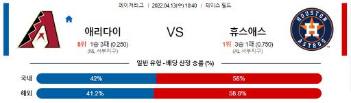 4월 13일 10:40 MLB 애리조나 : 휴스턴