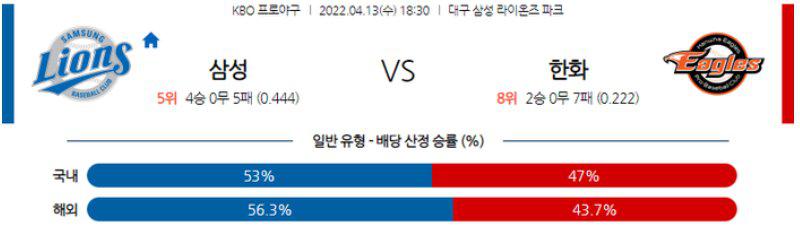 【KBO】 4월 13일 삼성 vs 한화