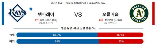4월 12일 MLB 탬파베이 : 오클랜드