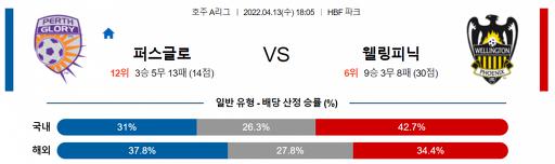 호주 1부 4월 13일 18:05 퍼스 글로리 FC : 웰링턴 피닉스 FC
