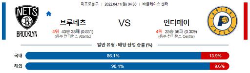 4월 11일 04:30 NBA분석 브루클린 : 인디애나