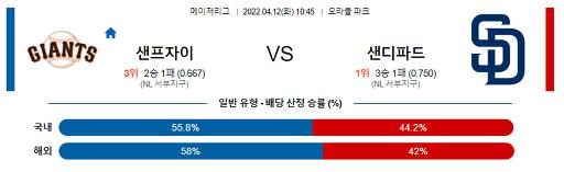 4월 12일 MLB 샌프란시스코 : 샌디에이고