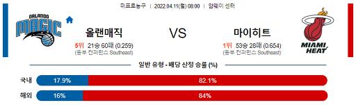 4월 11일 08:00 NBA분석 올랜도 : 마이애미