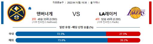 4월 11일 10:30 NBA분석 덴버 : LA레이커스