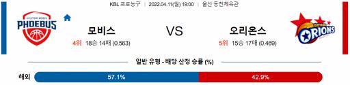 4월 11일 19:00 울산 모비스 : 고양 오리온스