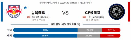 미국 MLS 4월 10일 05:00 뉴욕 레드불스 : CF 몬트리올
