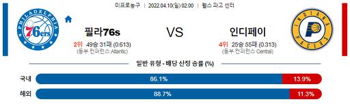 4월 10일 02:00 NBA분석 필라델피아 : 인디애나