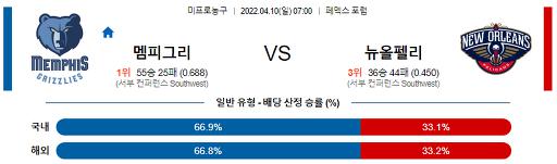 4월 10일 07:00 NBA분석 멤피스 : 뉴올리언스