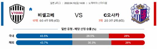 J리그 4월 10일 14:00 비셀 고베 : 세레소 오사카