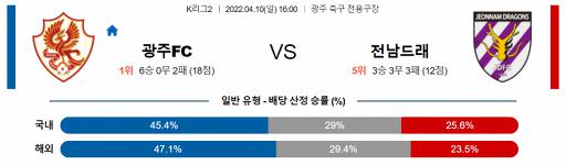 K리그2 4월 10일 16:00 광주 FC : 전남 드래곤즈