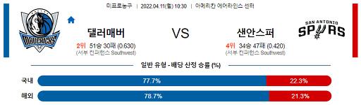 열람중 4월 11일 10:30 NBA분석 댈러스 : 샌안토니오 2022.04.10 336