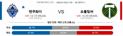 미국 MLS 4월 10일 11:00 11밴쿠버 화이트캡스 FC : 포틀랜드 팀버스