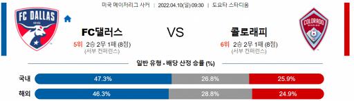미국 MLS 4월 10일 09:30 FC 댈러스 : 콜로라도 라피즈