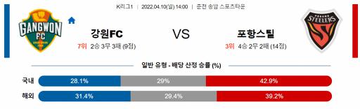 K리그1 4월 10일 14:00 강원 FC : 포항 스틸러스