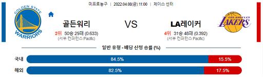 4월 8일 11:00 NBA분석 골든스테이트 : LA레이커스