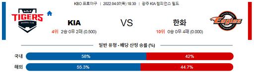 열람중 4월 7일 18:30 KBO KIA : 한화 2022.04.08 288