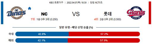 롯데의 승리를 가져간다. 시리즈 2차전에서 타선이 터지지 않으며 경기를 패했지만 선발의 확실한 우위가 있다. 또, 6회 이후로 리드가 있으면 구승민과 최준용등 필승조가 올라와 상대 중심타선을 틀어막을 수 있다. 엔시는 오영수와 도태훈등 기대주들이 성장세를 보여주고 있고 박건우가 살아났지만 타선의 힘에서도 상대에 밀리는게 사실이다. 반즈를 상대할 엔시의 빈타를 보기에 언더 경기다.