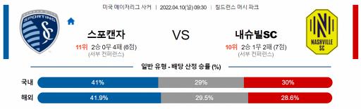 미국 MLS 4월 10일 09:30 스포팅 캔자스시티 : 내슈빌 FC