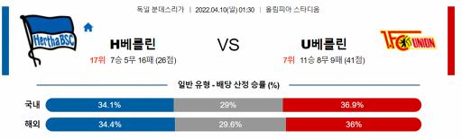 독일 분데스리가 4월 10일 01:30 헤르타 BSC 베를린 : 유니온 베를린