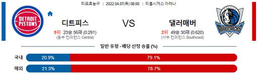 4월 7일 08:00 NBA분석 디트로이트 : 댈러스