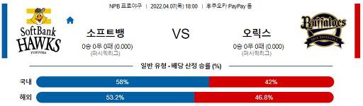 4월 7일 18:00 NPB 소프트뱅크 : 오릭스
