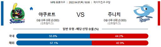 4월 7일 18:00 NPB 야쿠르트 : 주니치
