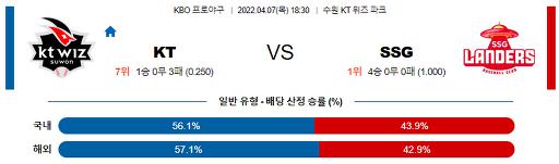 4월 7일 18:30 KBO KT : SSG랜더스