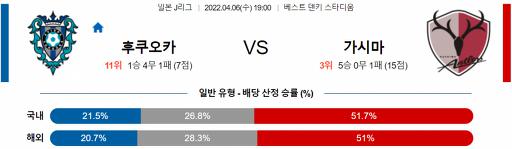 J리그 4월 6일 19:00 아비스파 후쿠오카 : 가시마 앤틀러스