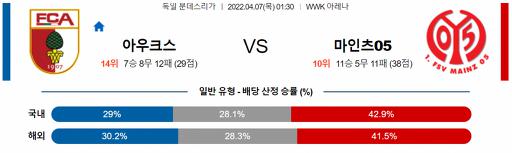 분데스리가 4월 7일 01:30 FC 아우크스부르크 : 마인츠