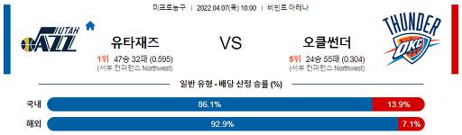 4월 7일 10:00 NBA분석 유타 : 오클라호마
