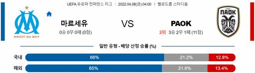 UEFA 유로파리그 4월 8일 04:00 올림피크 마르세유 : PAOK FC