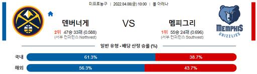 4월 8일 10:00 NBA분석 덴버 : 멤피스