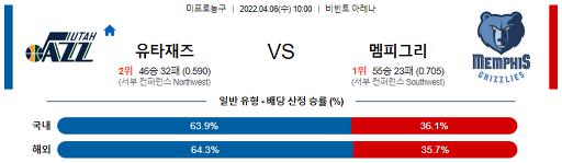 4월 6일 10:00 NBA분석 유타 : 멤피스