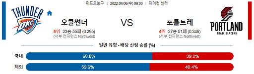 4월 6일 09:00 NBA분석 오클라호마시티 : 포틀랜드