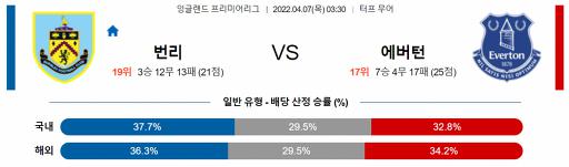 프리미어리그 4월 7일 03:30 번리 FC : 에버턴 FC
