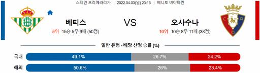 프리메라리가 4월 3일 23:15 레알 베티스 : CA 오사수나