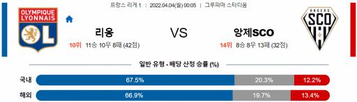 리그앙 4월 4일 00:05 올랭피크 리옹 : 앙제 SCO
