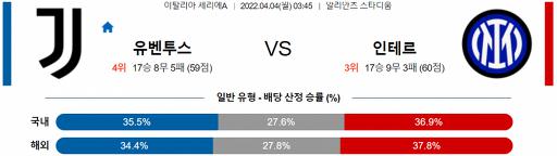 세리에A 4월 4일 03:45 유벤투스 FC : 인터밀란
