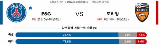 리그앙 4월 4일 03:45 파리 생제르맹 FC : FC 로리앙