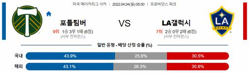 MLS 4월 4일 05:30 포틀랜드 팀버스 : LA 갤럭시