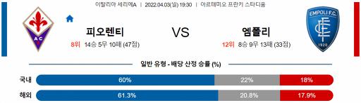 세리에A 4월 3일 19:30 ACF 피오렌티나 : 엠폴리 FC
