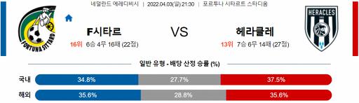 에레디비시 4월 3일 21:30 포르튀나 시타르트 : 헤라클레스 알멜로