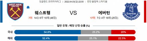 프리미어리그 4월 3일 22:00 웨스트햄 유나이티드 : 에버턴 FC