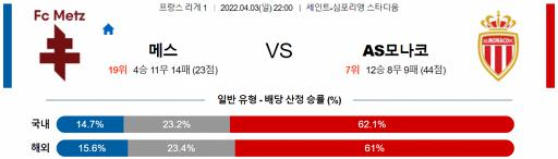 리그앙 4월 3일 22:00 FC 메스 : AS 모나코 FC