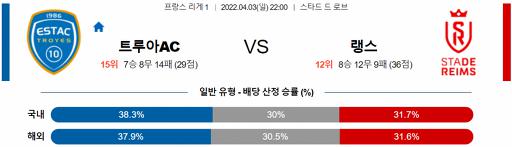 열람중 리그앙 4월 3일 22:00 트루아 AC : 스타드 드 랭스 2022.04.03 264