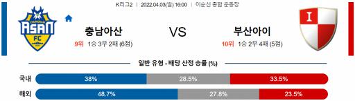 K리그2 4월 3일 16:00 충남 아산 FC : 부산 아이파크